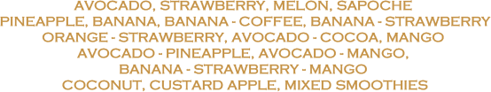 Smoothie ingredients are main fruits and included liquid like yogurt, condensed milk, or cream. You can arbitrarily process different types of smoothies depending on your tastes. The tastes of various smoothies depend on the ingredients and preparation, many people like to add crushed ice to the final product for a cool paste like a milkshake.